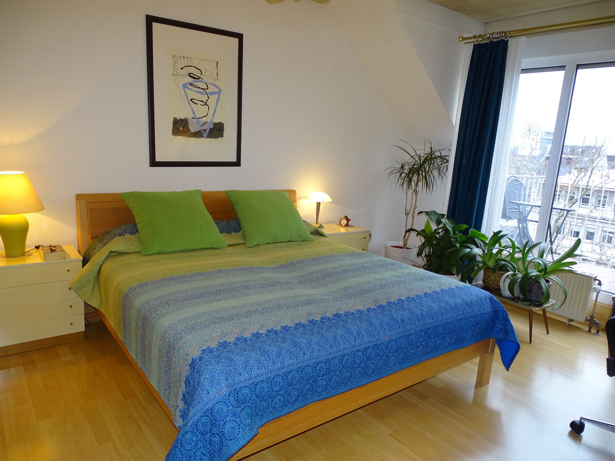 Das 76 qm große lichtdurchflutetes Dachapartment mit 2 Terrassen ist vollständig und bequem ausgestattet. Es hat ein Schlafzimmer mit Doppelbett, ein Wohnzimmer mit einer Schlafcouch, Küche und Bad. Sie erreichen es mit einem Aufzug und geniessen die schönen Blicke auf eine baumbestandene, Allee, auf Christuskirche und Tau- nusberge.